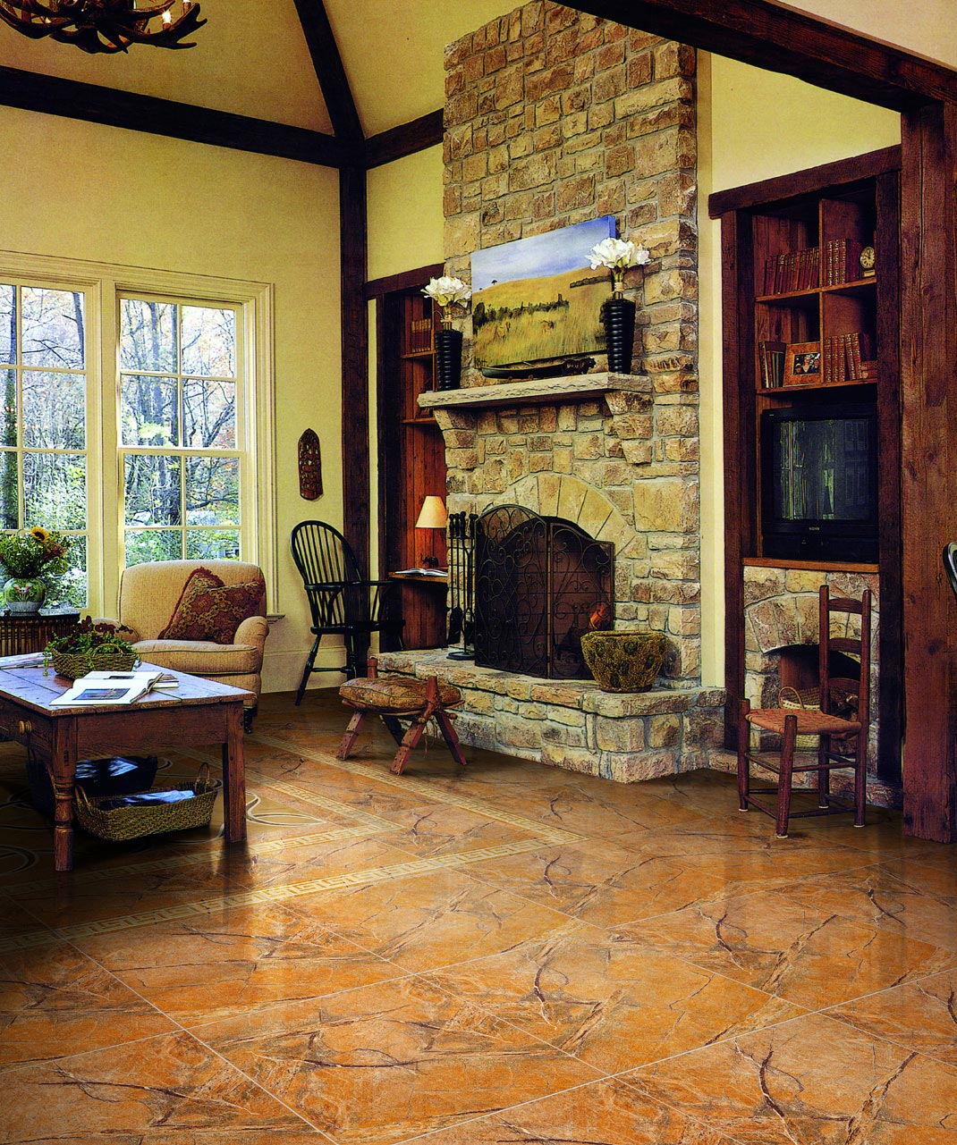Multichannel roller printing and glaze color technology, through glaze carving process, perfectly reproducing crack effect of natural stone. Using  glaze imported from Italian, not using radioactive substances harmful to human.